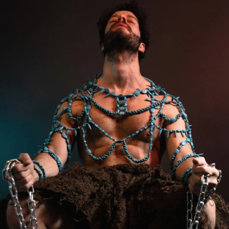 Prometeu explica la història d'un tità que va ser encadenat a una roca en alta mar i condemnat per Zeus a viure allí, només, per tota l'eternitat. Aïllat, rep la visita de déus, nimfes i bruixes, alguns que ho secunden i altres que ho acusen d'haver robat el foc de l'Olimp i haver-lo compartit en la terra amb els homes. Allí, enmig de la mar, en secret, planeja la seva venjança contra Zeus i, com a conseqüència, el seu alliberament de tan terrible càstig.