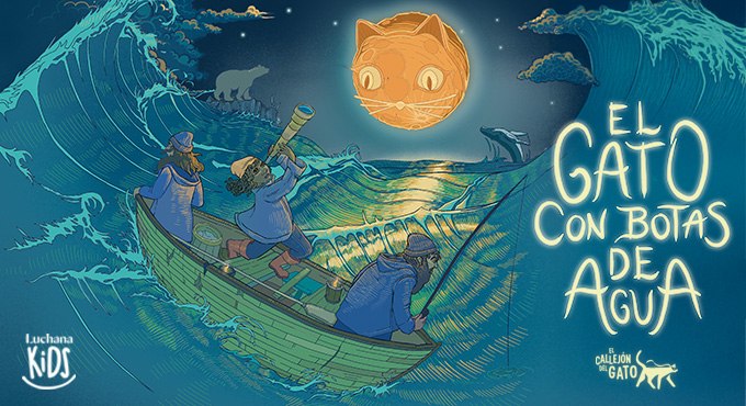 El gato con botas de agua és la nostra versió del conte clàssic, pensada per a arribar a la sensibilitat del públic infantil i familiar del segle XXI. Una proposta de teatre visual, de titelles i objectes, que busca reflexionar sobre els drets fonamentals de la Infància.Un vaixell de pesca en alta mar, una tempesta i un rescat; una nena i un gat...