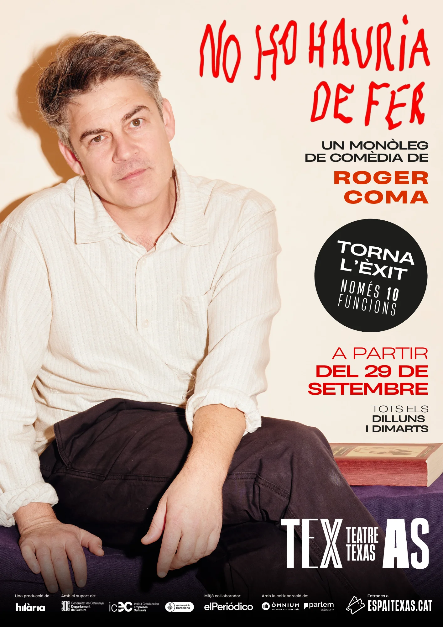 El reconocido actor Roger Coma presenta No ho hauria de fer, su primera hora de stand-up. El viaje en primera persona desde que recibe el encargo de realizar el discurso de un funeral hasta que llega el día.