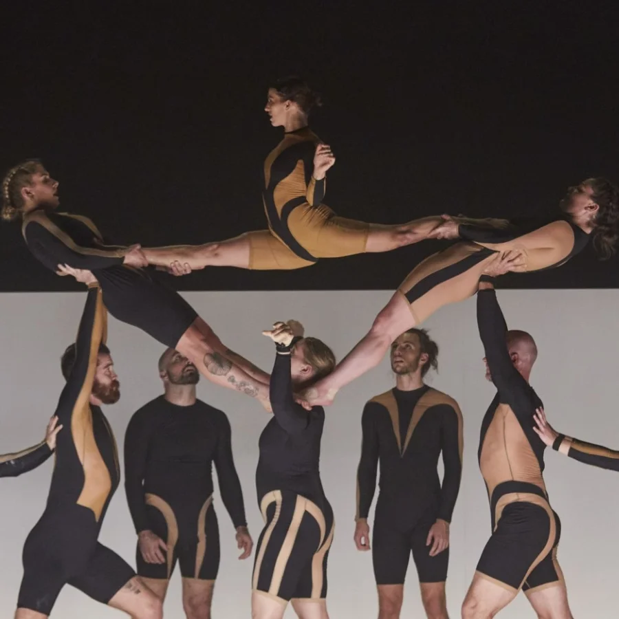 Vestidos con los ajustados trajes de la diseñadora Libby McDonnell y ambientados con los implacables ritmos primarios del DJ Ori Lichtik, el elenco de diez extraordinarios artistas de Circa se agarran, se desgarran, trepan, saltan y hacen equilibrios con feroz abandono.